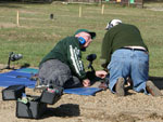 Consultation before the start: L-R Kev Spread, Kim (back to